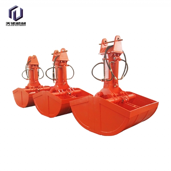 挖掘機(jī)貝型斗(也叫抓斗,哈殼斗)分為液壓回轉(zhuǎn)和不帶液壓回轉(zhuǎn)兩種。不帶液壓回轉(zhuǎn)的貝型斗采用挖掘機(jī)鏟斗油缸的油路,不用另外添加液壓閥塊及管路;帶液壓回轉(zhuǎn)的貝型斗要添加一套液壓閥塊及管路來(lái)控制,油缸配置活塞保護(hù)裝置。