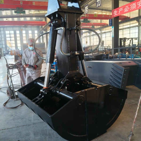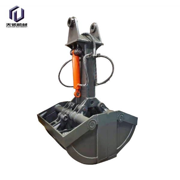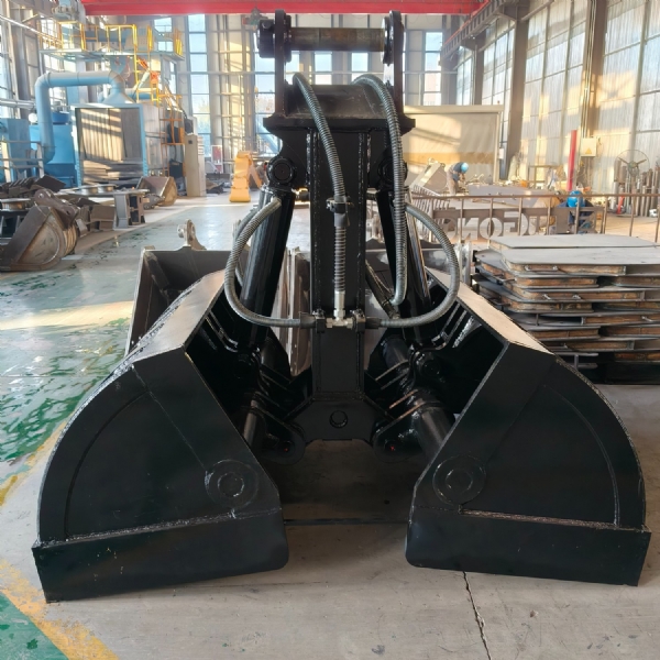 挖掘機(jī)貝型斗(也叫抓斗,哈殼斗)分為液壓回轉(zhuǎn)和不帶液壓回轉(zhuǎn)兩種。不帶液壓回轉(zhuǎn)的貝型斗采用挖掘機(jī)鏟斗油缸的油路,不用另外添加液壓閥塊及管路;帶液壓回轉(zhuǎn)的貝型斗要添加一套液壓閥塊及管路來(lái)控制,油缸配置活塞保護(hù)裝置。